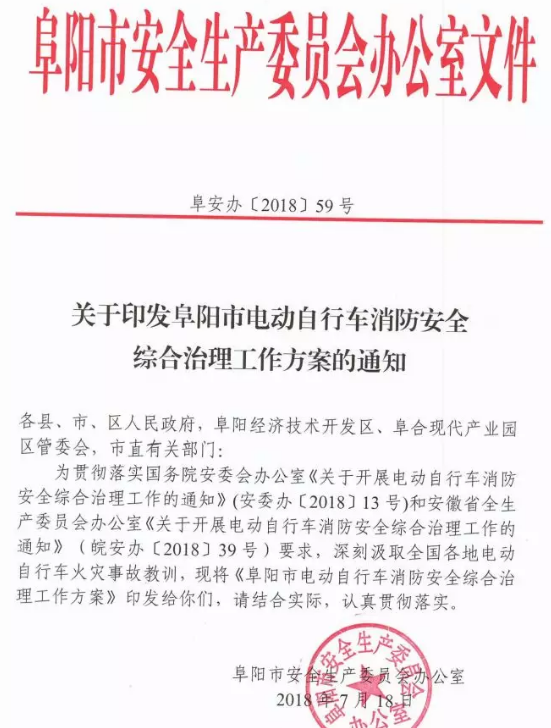 近日,阜阳市安全生产建管局发布了《阜阳市电动自行车消防安全综合治理工作方案》,决心要对阜阳的电动车开展为期5个月的专项治理。